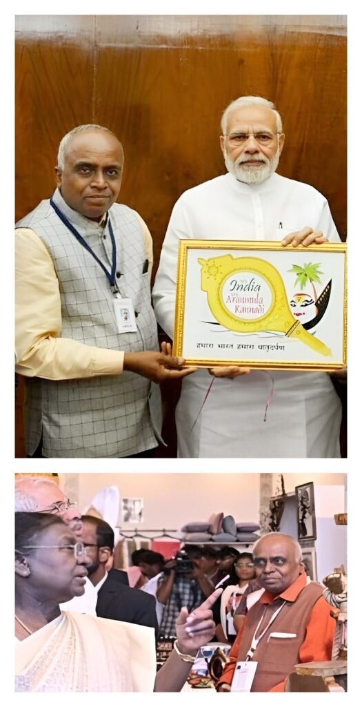 As a leader within the artisan community, he has also served as the Secretary of the Viswabrahmana Aranmula Metal Mirror Nirman Society, working to support and guide fellow craftsmen. His life’s work stands as a bridge between ancient tradition and the modern world, ensuring that this unique and rare craft continues to inspire, endure, and thrive for generations to come.